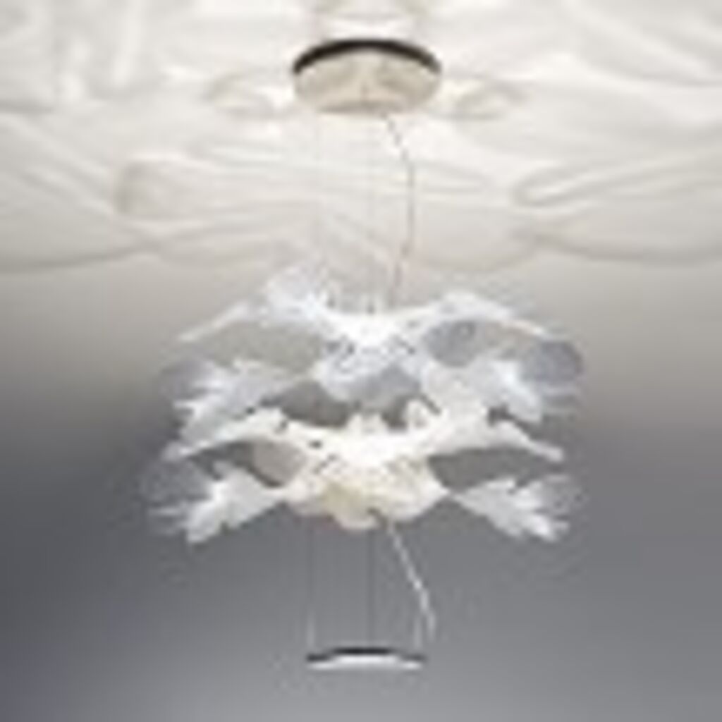 A spherical-shaped diffuser hand-blown in opaque white glass is enhanced by a removable tapering stem which emits a soft glow. The stem is made of steel with tubing covered in polycarbonate sleeve.