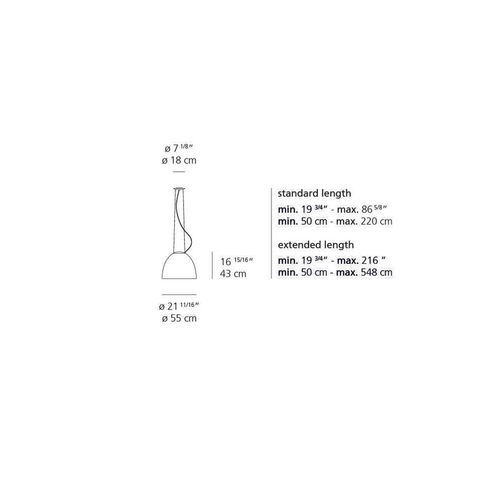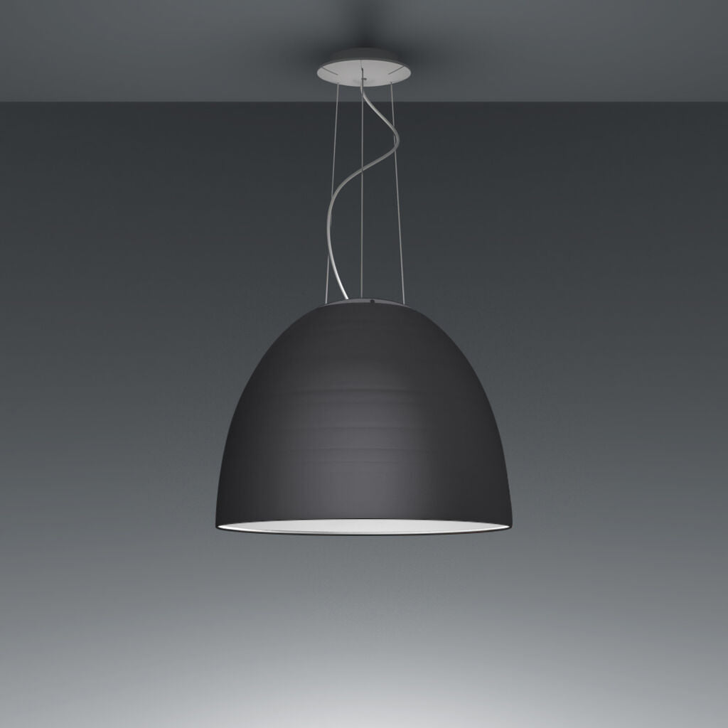 A system for the metamorphosis of light, Nur Suspension has a sleek, contemporary dome shape that provides direct downlighting, with a sanded glass top that also allows a softer, more subtle diffused light to escape. Nur creates indirect light accompanied by a subtle “halo” effect on the ceiling.