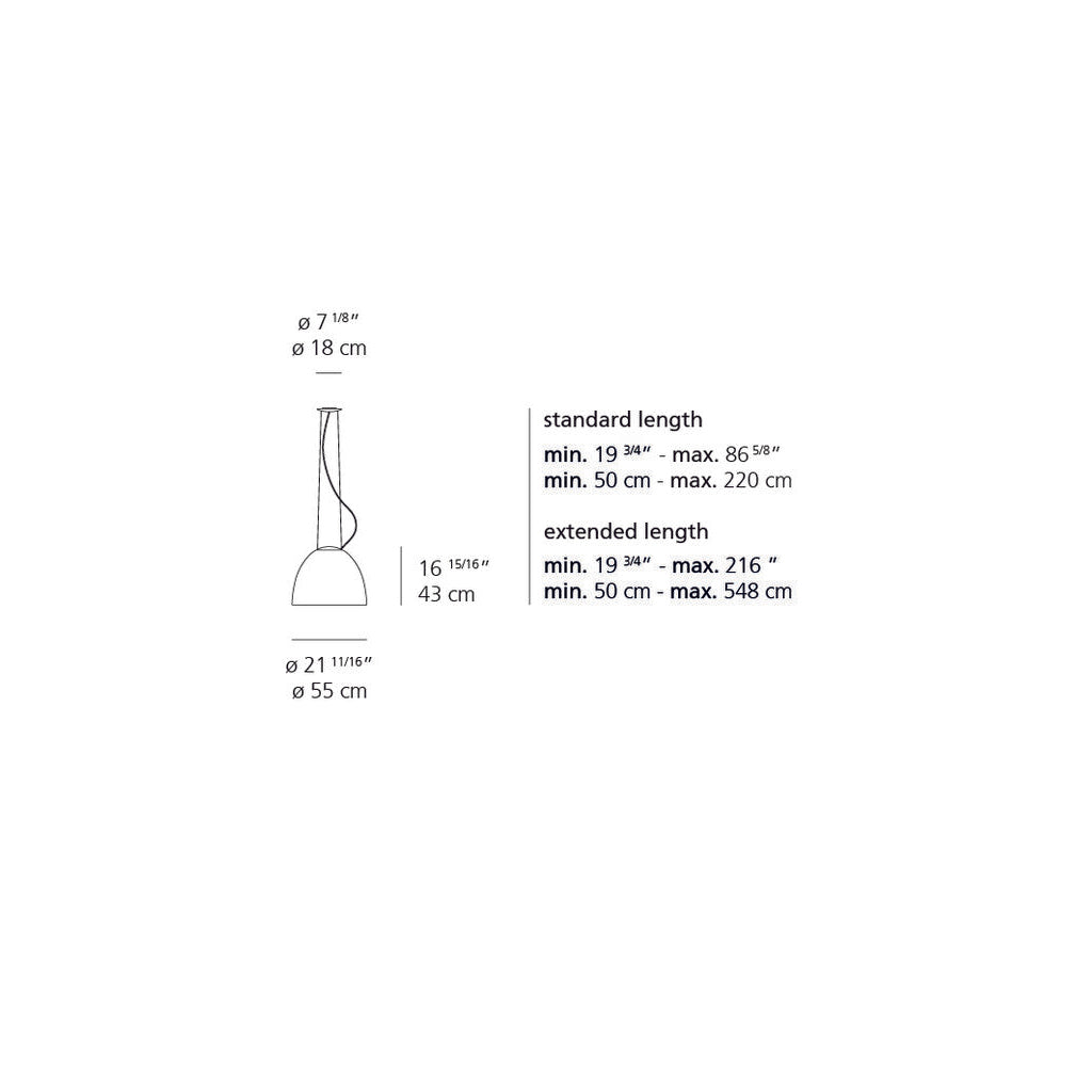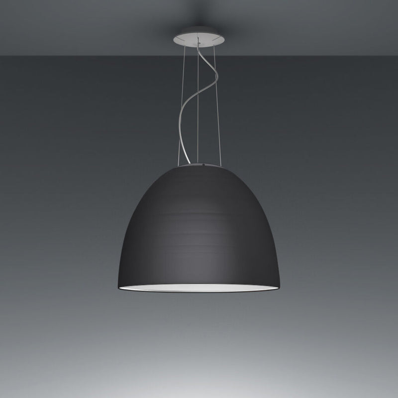 A system for the metamorphosis of light, Nur Suspension has a sleek, contemporary dome shape that provides direct downlighting, with a sanded glass top that also allows a softer, more subtle diffused light to escape. Nur creates indirect light accompanied by a subtle “halo” effect on the ceiling.
