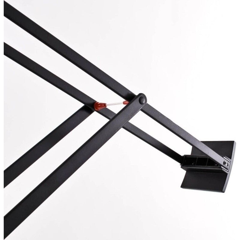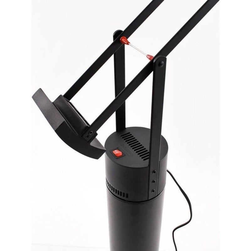 The Tizio Terra 35 Floor Support is constructed in lacquered anti-corrosion treated aluminium and polymer and has zinc alloy counterweights. The distinctive sculptural form has adjustable counterbalanced arms and head. Parallel arms conceal the electricity conducting wires, keeping the form simple. Light emission is direct and adjustable, with two light levels. This floor light is a versatile, modern classic that will enhance all living and work environments. It is 126cm high and 65cm wide. The Tizio Terra 35 Floor Lamp base is 10cm in diameter. There are matching table lamps in the Tizio Collection that complement the Tizio floor support.
