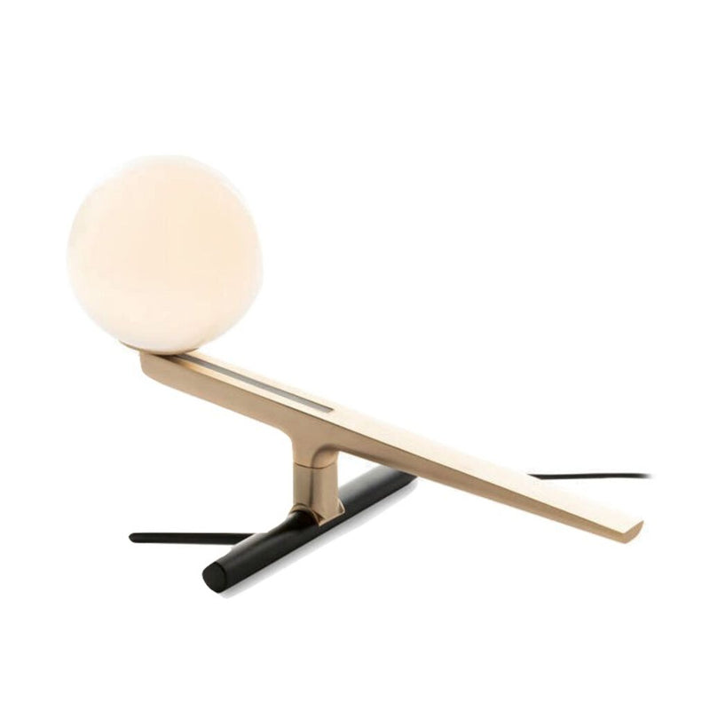 The Yanzi LED Table Lamp features a dynamic composition focused on a stylized depiction of a single swallow perched on a branch. Using graphic elements to convey poetic and iconic imagery, this decorative table lamp features a delicate elegance that is also innovative. Constructed from brass and blown glass and containing an LED light source, it is perfect for use in modern bedrooms, living rooms, and home offices.
