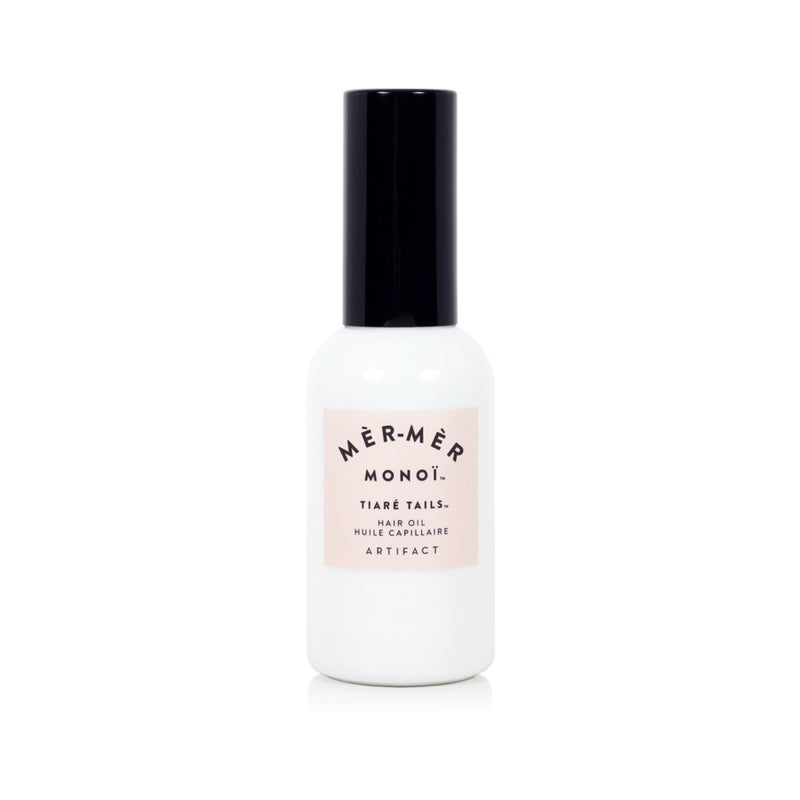 The Mer-Mer Repairing Hair Oil in Monoi from Artifact Skin Co. is a blend of tiaré (gardenia) blossoms and Polynesian coconut oil that protects hair ends from heat, prevent breakage, and repairs your hair. This mixture has been used for thousands of years to protect hair and skin from harsh sun rays, insects and salt water in the South Pacific.