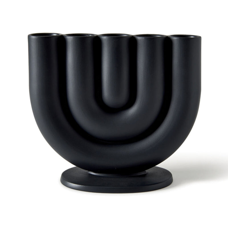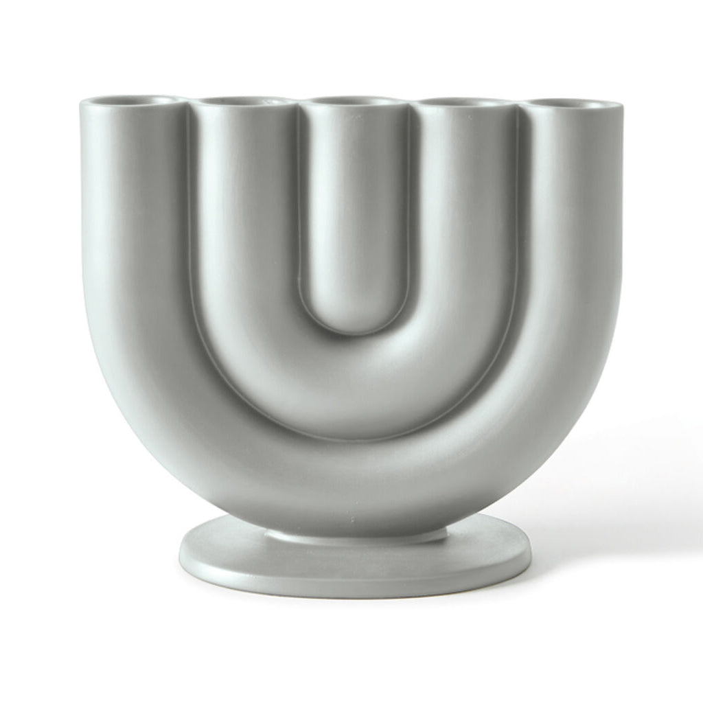 RAH is a candlestick with iconic, playful lines made of cold matt enamelled ceramic in a variety of different colours. The name is an evocative tribute to the traditional Jewish Menorah. Rah stands out for its formal simplicity, bringing a smile to our faces by recalling the childish pastime of playing with plasticine to create different shapes. The versions with two and five arms can both be used with two different types of candle, leaving us free to choose at the last minute on the basis of requirements, and also permitting alternation of the two.