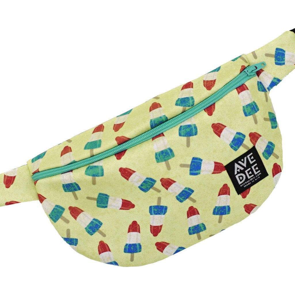 Bring back the good times - fashion is all circular anyway, and it's about time the Fanny Pack made a splash back onto the accessory scene. Hand designed, well constructed, and perfect for a day on the boardwalk, the Avenue Dee Rocket Pop Fanny Pack is both nostalgic and modern.