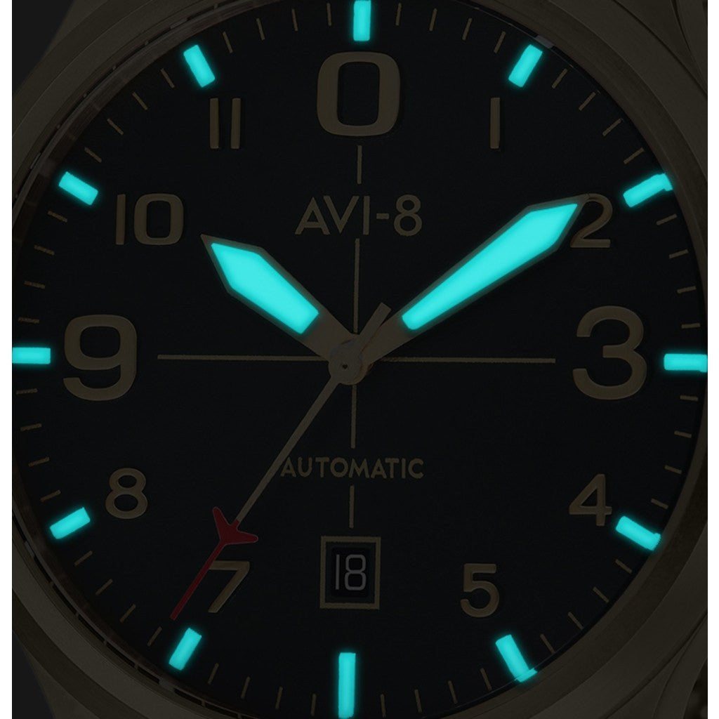 Fashion, history, and style come together with the Flyboy AV-4021-33 Watch. AVI-8 crafted this watch with a deep green dial with Super Luminova indexes housed in a solid stainless steel case. Finished with a Gold Mesh Strap, this timepiece is perfect for any occasion. AVI-8 makes sure you'll always be on time with precise Miyota Japanese self-winding automatic movement.