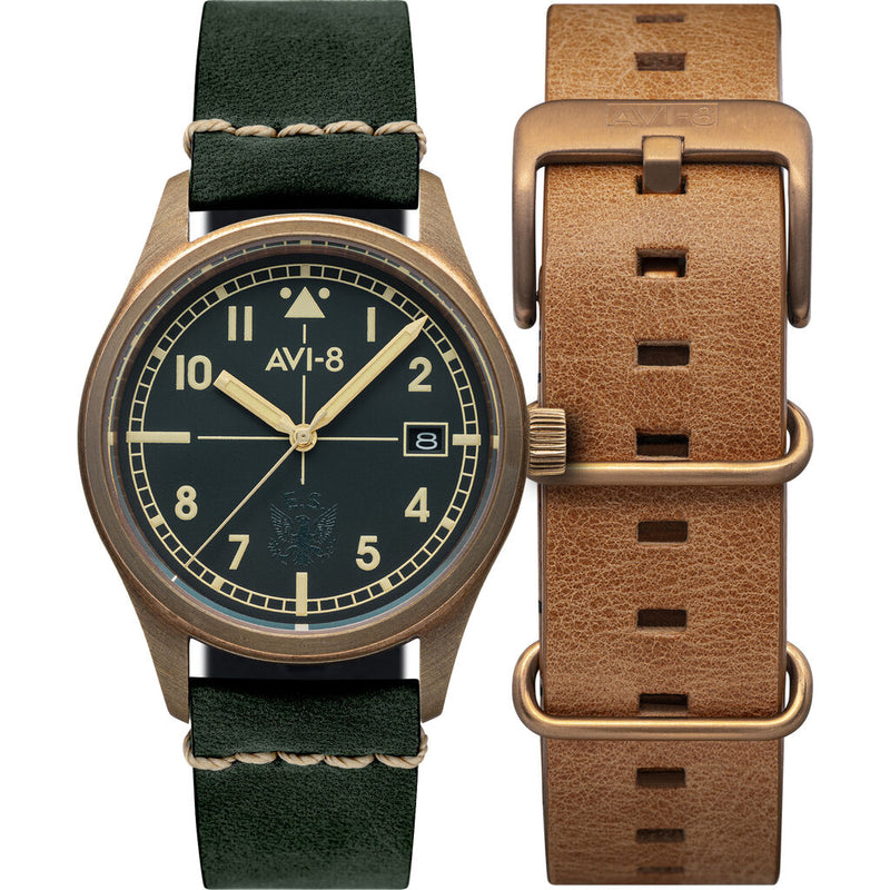 Nonetheless, the bravery, sacrifice by a small group of Americans has not been forgotten and is commemorated by The Eagle Squadrons Memorial located on Grosvenor Square opposite from a statue of Franklin D. Roosevelt. The AVI-8 Flyboy Eagle Squadron Bronze Automatic pays tribute to the Eagle Squadron through a classic pilot watch forged out of a classic silhouette. It is imagined with both history and technology creating a timepiece that is a very wearable homage to this chapter in the heroism of military aviation.