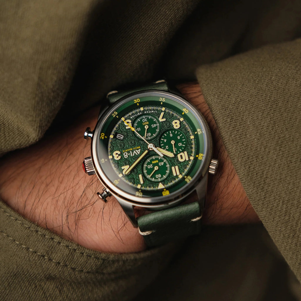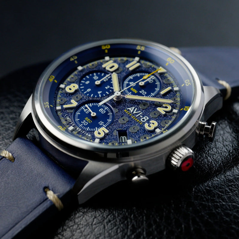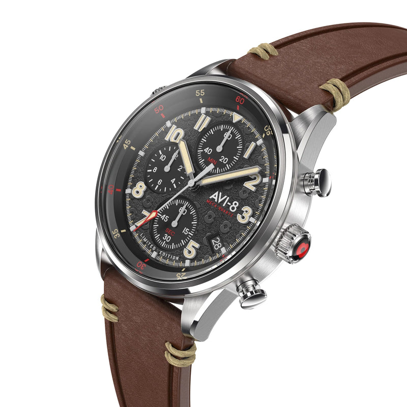 As part of our dedicated partnership with the Royal British Legion, the latest chapter in this important collaboration is a decidedly military-inspired limited edition timepiece. Featuring pinpoint TMI hybrid meca-quartz chronograph movement with date, the watch echoes RAF issue chronographs supplied in the 1980s to servicemen. The watch also features an inner turning timing bezel for extra inflight functionality and the dial, hands and subdials are designed and applied for maximum legibility under the most trying conditions. Each of the 500 limited edition watches is uniquely numbered and comes packed with a nylon Nato strap along with its affixed custom hand-crafted genuine leather strap.
