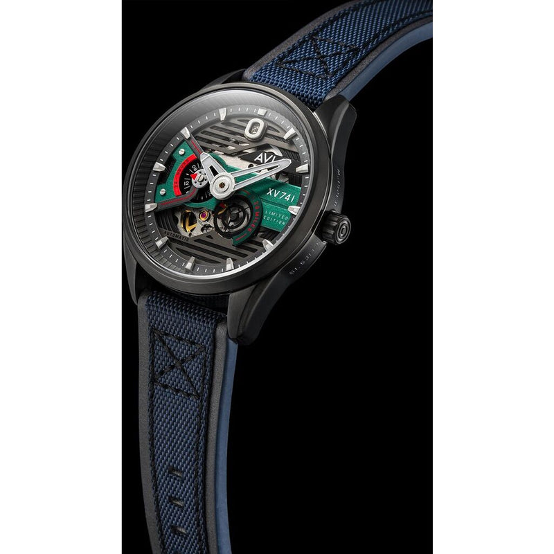 Under the hood, the XV741 is powered by a modified 21 jewel, 21,600 vph, Miyota 8 series automatic movement. A custom self-winding rotor has been designed to echo the Harrier's distinguished Rolls Royce Pegasus engine.
