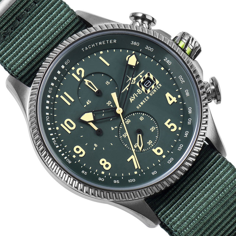 AVI-8 focuses on functionality with the Hawker Hunter AV-4036-08 Chronograph Watch. AVI-8 crafted this watch with a black dial housed in a solid stainless steel case. Finished with a Genuine Leather Strap, this timepiece is perfect for any occasion. This watch also comes with a durable nylon strap, just in case you want to change up your look. AVI-8 makes sure you'll always be on time with precise Quartz Japanese Chronograph movement.