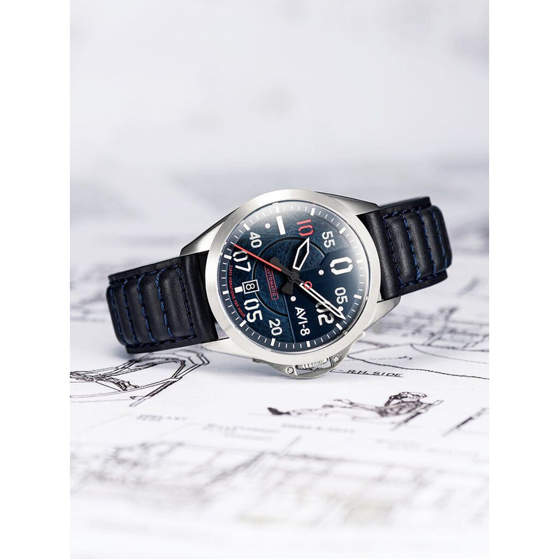 Inspired by an American hero, the Hitchcock Automatic pays tribute to a Lafayette Escadrille member and national polo champion who directly influenced the development of the P-51 Mustang during WWII. Securing this timepiece to the wrist is our instantly identifiable padded genuine leather strap, inspired by the design of the P-51 Mustang's seats. Given his prominence and accomplishments in polo, the colourways of the Hitchcock Automatic are suitably inspired by the various polo clubs Hitchcock represented over the years.