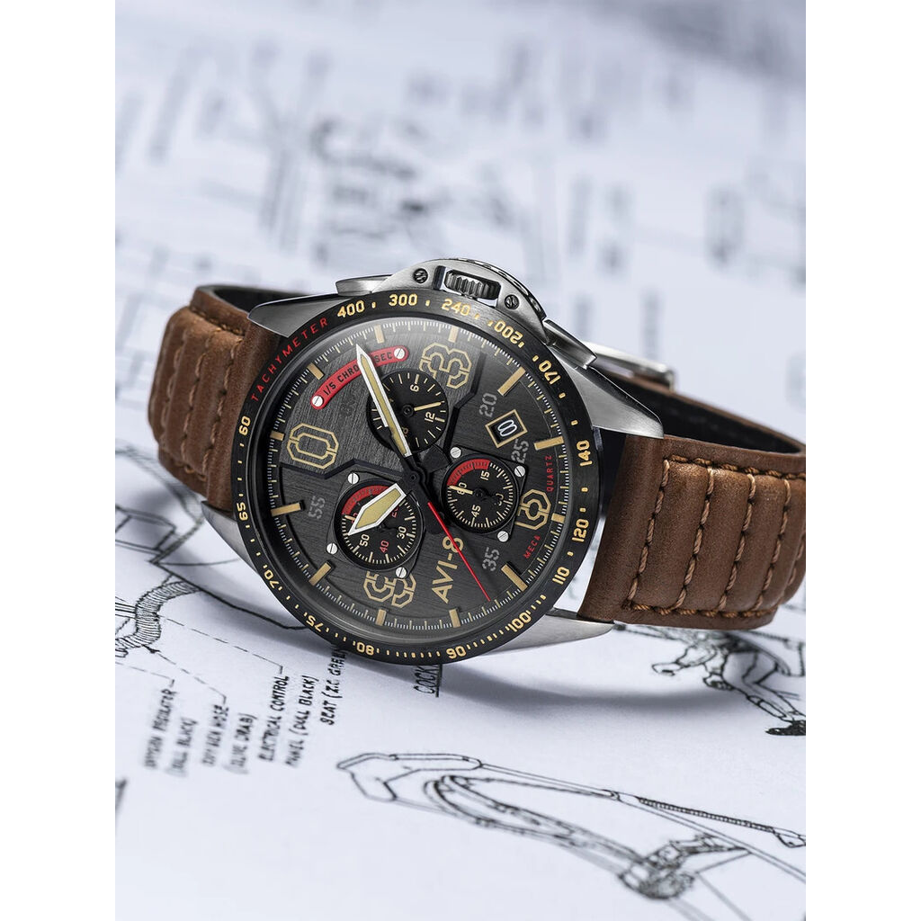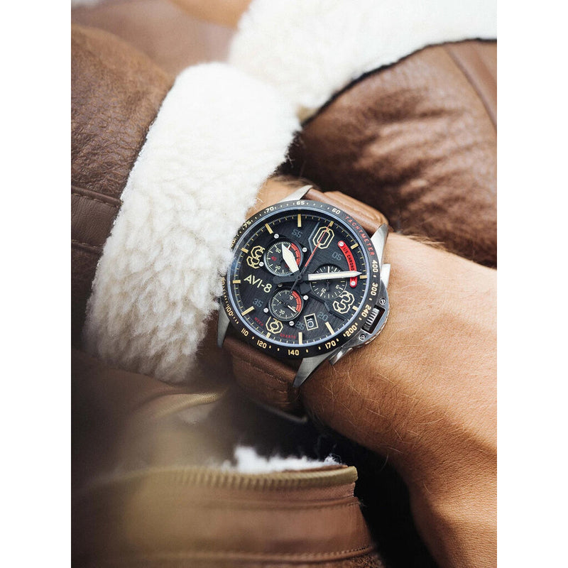 AVI-8 P-51 Mustang 4077-02 Watch | Black/Brown