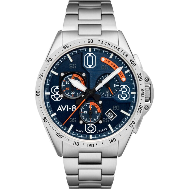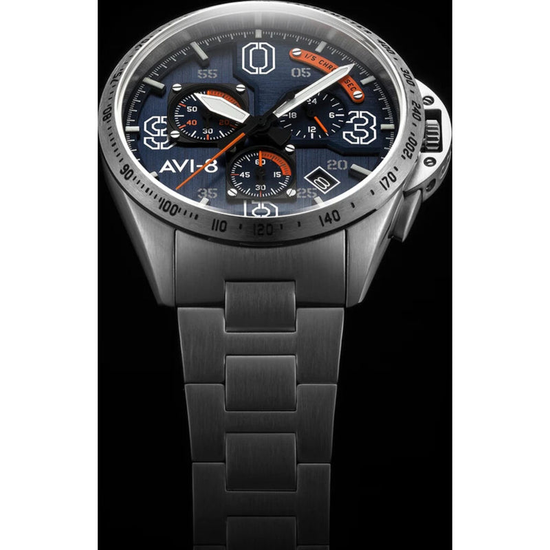 Utilising the famed Seiko VK series Meca Quartz movement, the P-51 Mustang Blakeslee chronograph is armed with the reliability and precision of quartz split time chronograph timing along with the satisfying and nostalgic hand feel of high beat automatic movements. The result is a high spec timing instrument that looks and operates like no other chronograph.