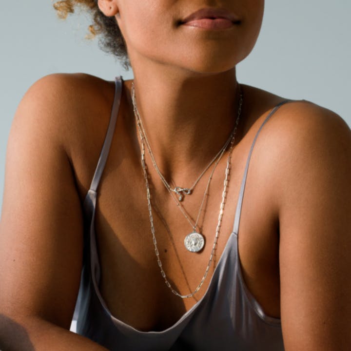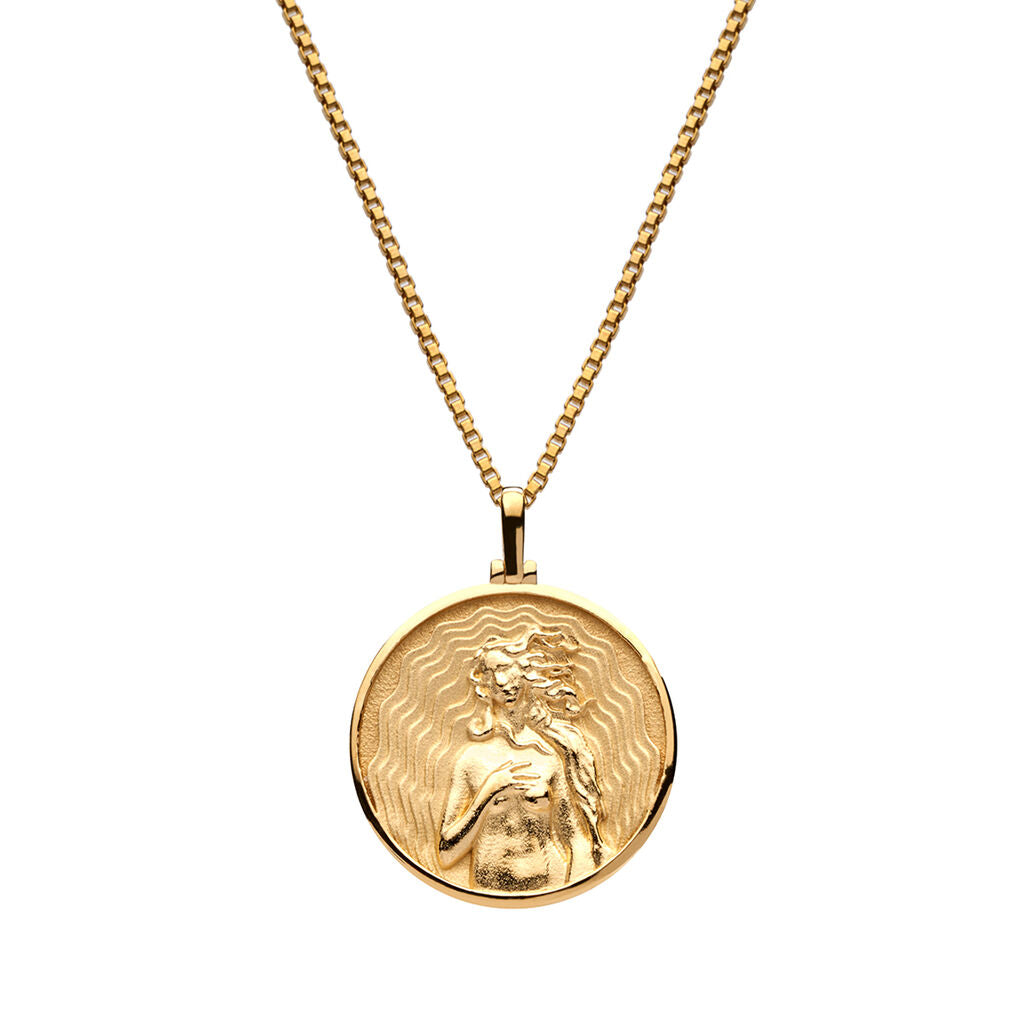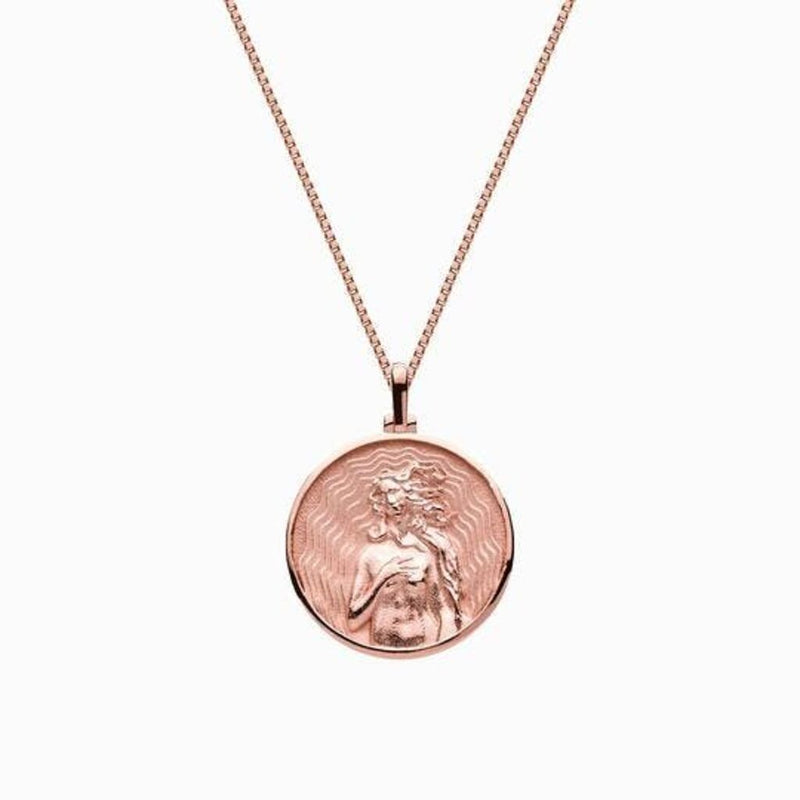- Handcrafted and hand-polished Aphrodite coin pendant with a dynamic triangular bale