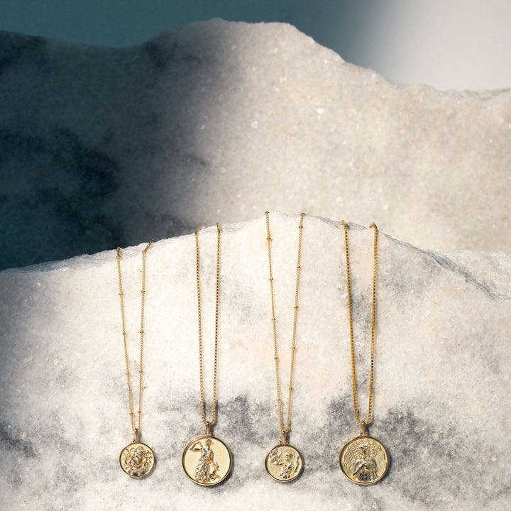 We design fine jewelry as a vehicle for self-empowerment. Our beloved Goddess Collection, which celebrates iconic women from past, present, and mythology, is worn regularly by the most inspiring women in the world. Aphrodite is so much more than the Greek Goddess of love, beauty, and gracefulness. “Aphros” means foam in Greek, as she was born from the sea foam (remember that next time you emerge from the bubble bath). She’s represented by doves, sparrows, and swans. And myrtle trees, as infertile myrtle.