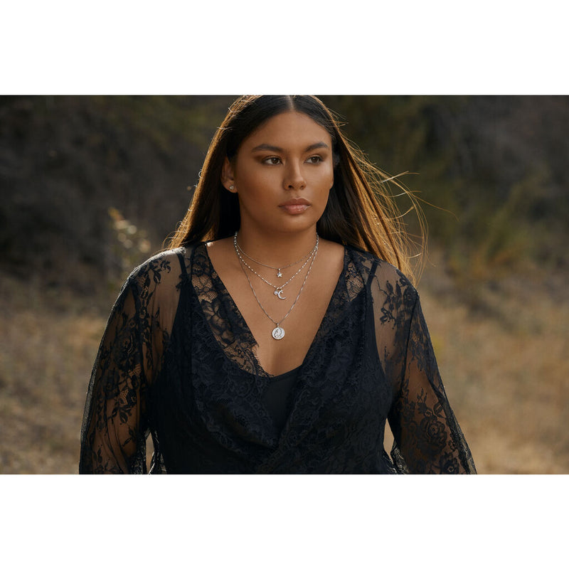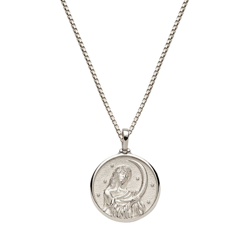 - Handcrafted and hand-polished Selene coin pendant with a dynamic triangular bale