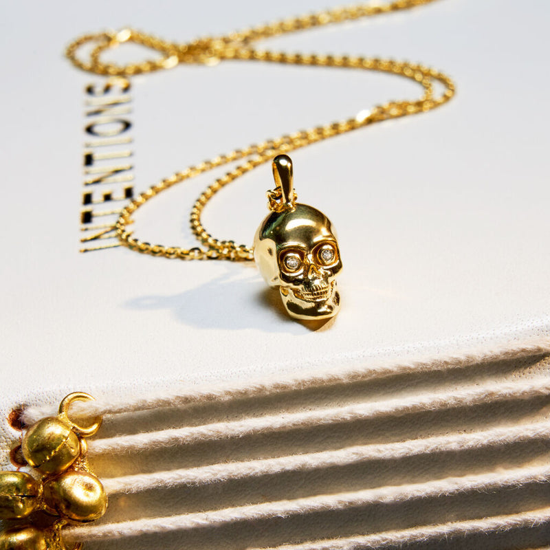 The skull represents a myriad of ideas to many cultures; the transitoriness of life, the container of the vital life force in the head, mortality, and the celebration of life. Accented with brilliant diamond eyes, this charm can be worn as a reminder to never take anything for granted a to live your life to the fullest.