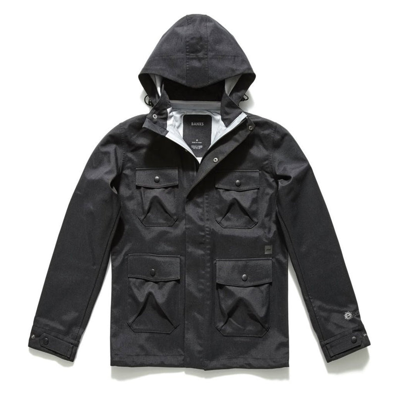A clothing company on the cutting edge of sustainability and utility, Banks seeks to merge innovative minimalist design with durability and functionality into a single unique brand. The Transit Jacket in Black is a distinctive combination of fashion and function, offering exceptional protection from the elements along with an understated black/grey design. The numerous pockets and nylon material make it a clean and professional choice to look great in difficult weather.