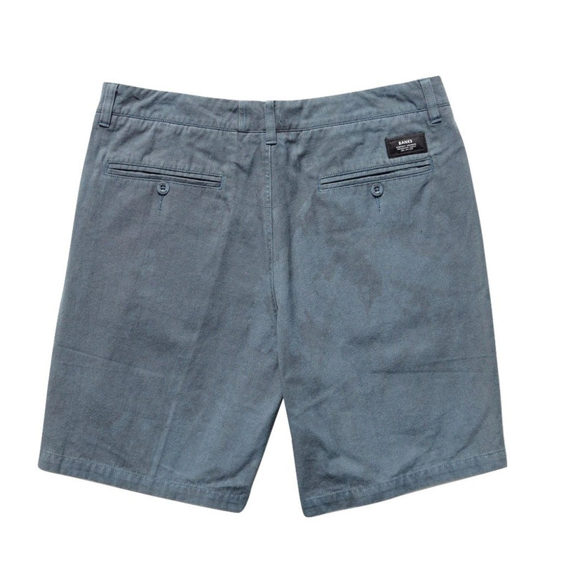 A clothing company on the cutting edge of sustainability and utility, Banks seeks to merge innovative minimalist design with durability and functionality into a single unique brand. The Staple Boardshort in Steel Blue offers a simple design, perfect for everyday wear. Made with 100% cotton canvas, these shorts are finished with custom buttons and recycled polyester woven labels.
