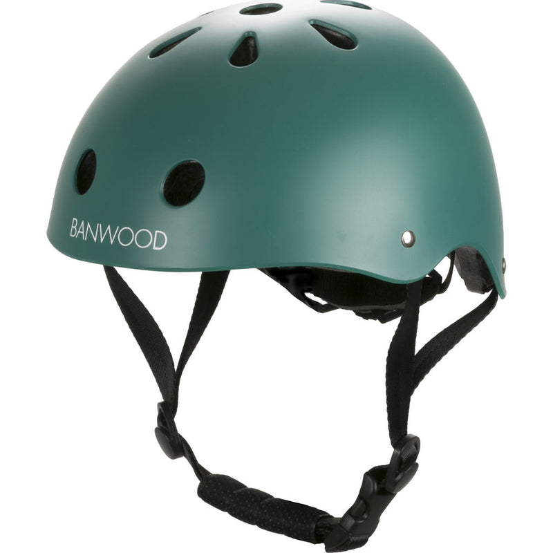 Keep your child safe while they are riding their bike with the Matte Dark Green Kid's Helmet from Banwood. This toddler helmet provides your child with the ultimate protection and safety on all their adventures. Designed with a classic vintage style and a light, durable ABS shell with a green matte finish. Featuring an adjustable chin strap and a dial fit adjustment system in the back for a comfortable and secure fit.