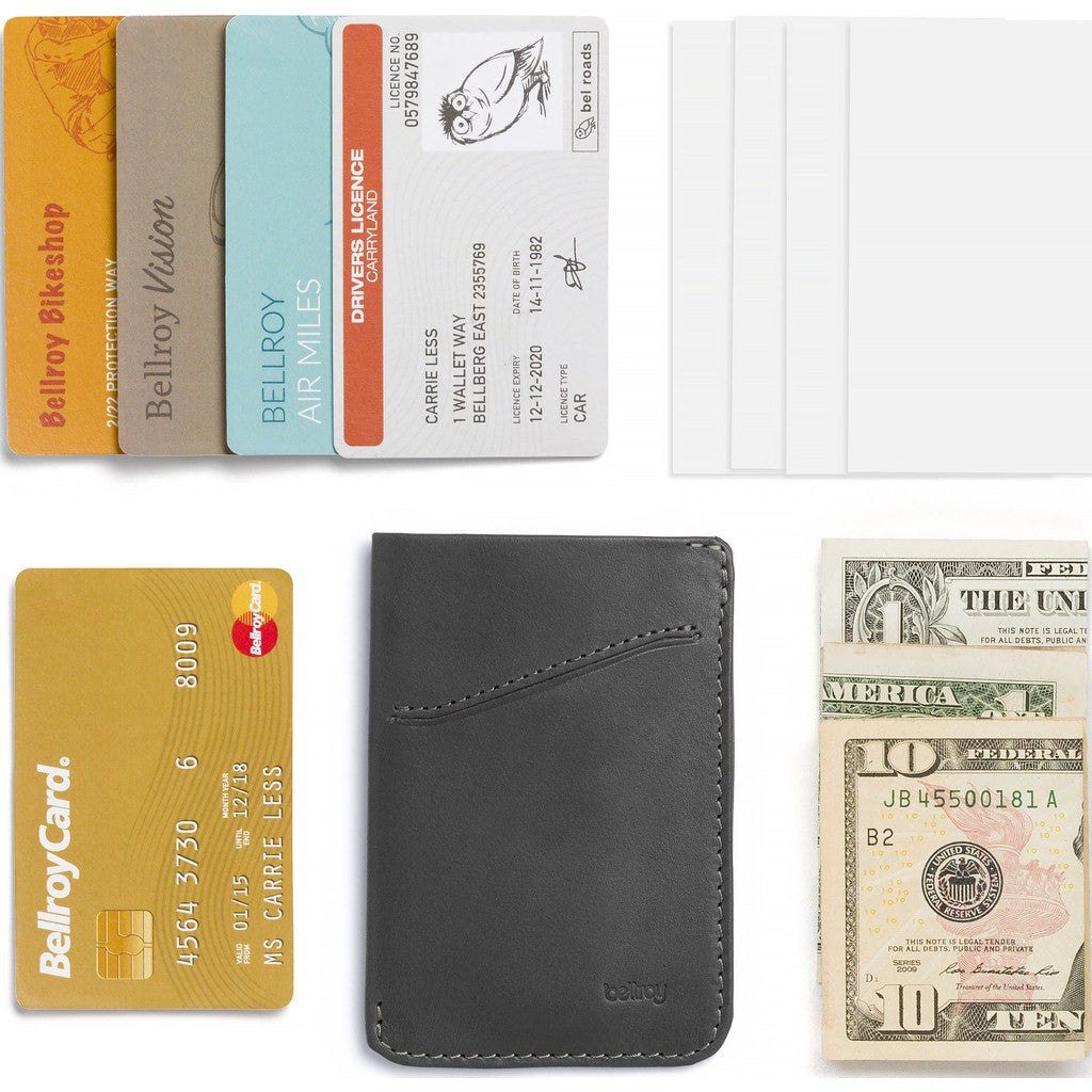 The Bellroy Card Sleeve Wallet is the slimmest style in the Bellroy arsenal. While small, it's quite versatile, perfect as a business card holder, going out wallet, or a full-time wallet for those who have a black belt in slimming their pocket. The larger main section features a pull tab for easy access, holding money and cards, while the outside pockets provide quick access for the more regular items.