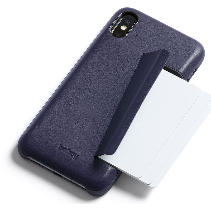 A seamless combination of sleek styling and convenient functionality; the 3 Card iPhone X Case from Bellroy blends rich navy leather and durable polymer to craft this groundbreaking design. This cellphone case features a dedicated card slot with enough space to simultaneously hold a credit card, debit card, and driver's license. The 3 Card iPhone Wallet is finished with a supple microfiber lining to ensure your phone doesn't get scratched or damaged when being taken in and out of the case.