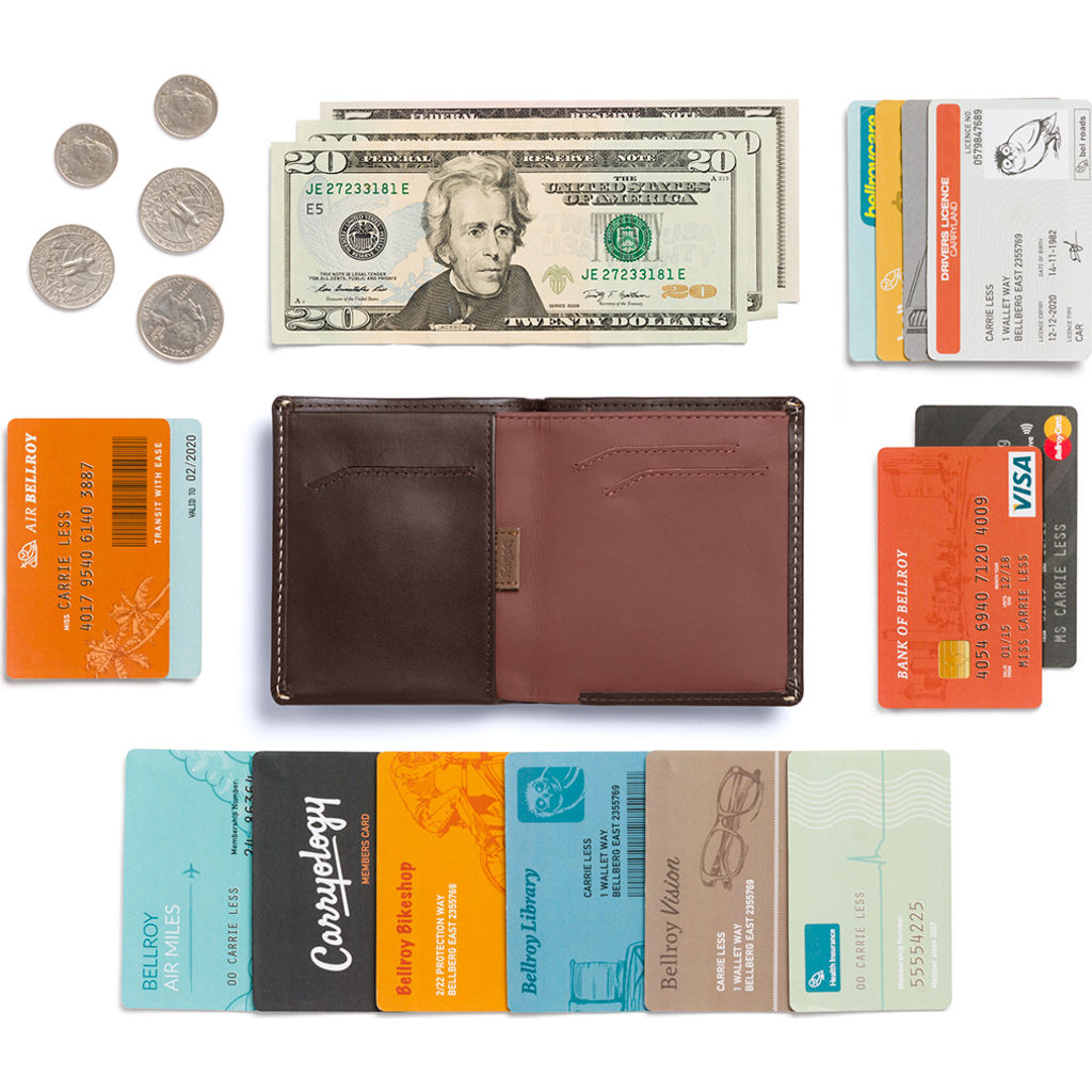 With tons of features, slots, pockets, and pouches all packed into a slim silhouette, the Note Sleeve from Bellroy truly offers a better way to carry. Crafted entirely from supple brown leather, this vertical bifold wallet features 3 quick access card slots, a dedicated card slot with pull tab, a central pocket for flat bills, and a hidden pouch for securely storing coins. And just to ensure you always feel secure, the Note Sleeve is RFID protected!