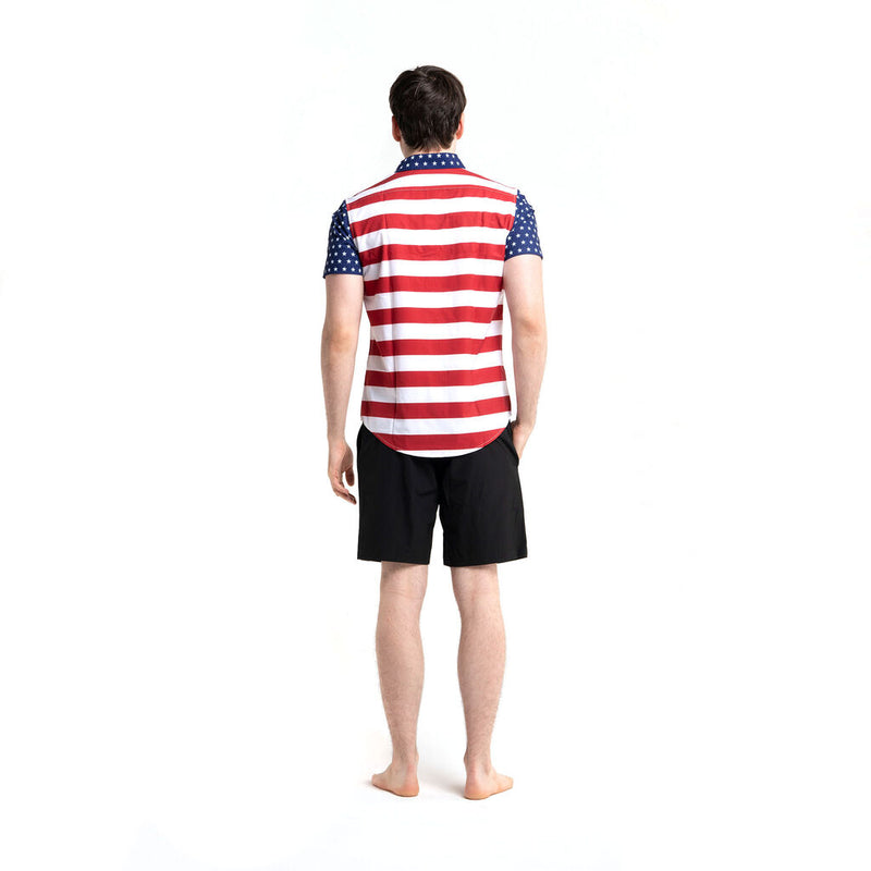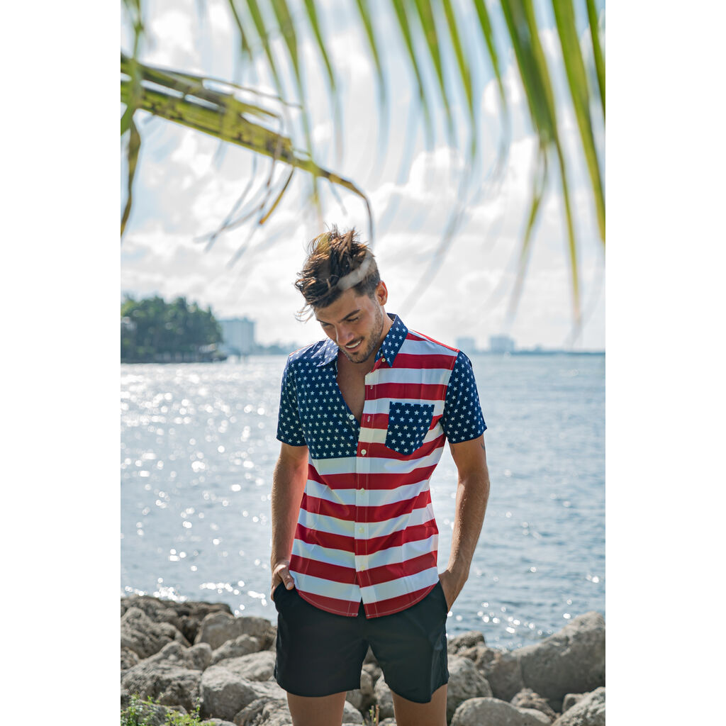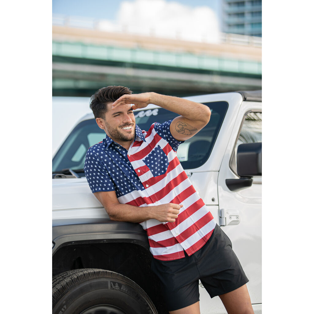 This Performance Button Down Shirt is made out from a hybrid blend of recycled polyester and lycra that makes it stretchy, breathable, and so comfortable you will never want to take it off. The fabric is wrinkle-free, so you can just put it on and hit the floor running. It is fast drying so if you accidentally spill and adult beverage on yourself while you hang out at a luau, beach bar, pool party or barbecue, there will be nothing to worry about.