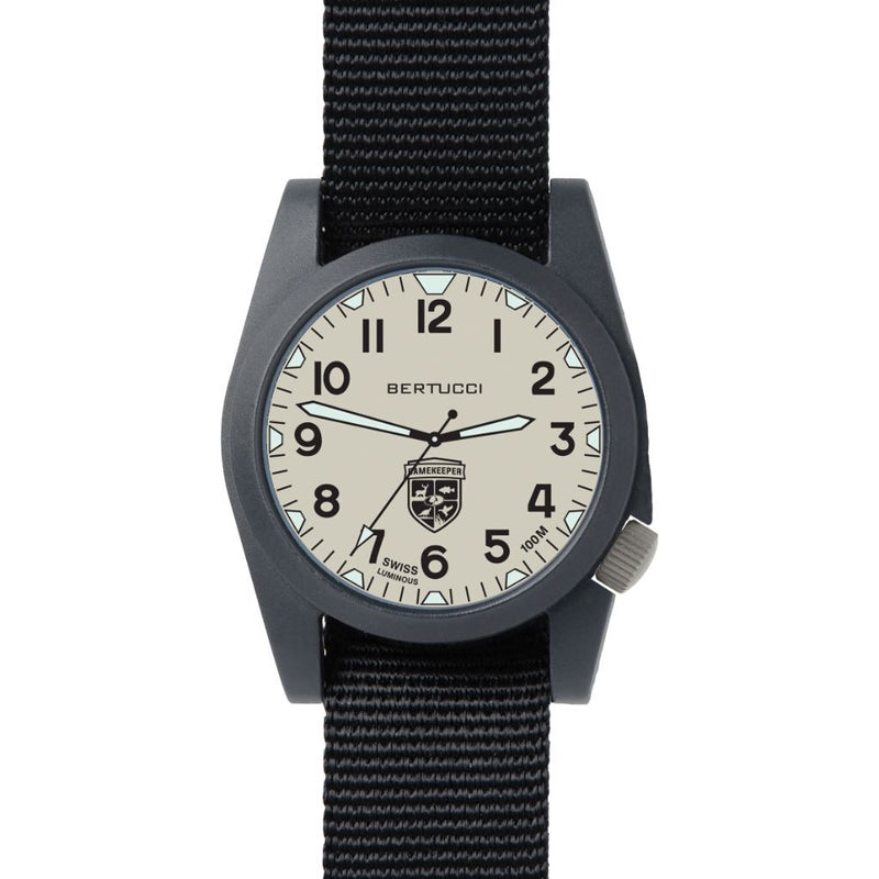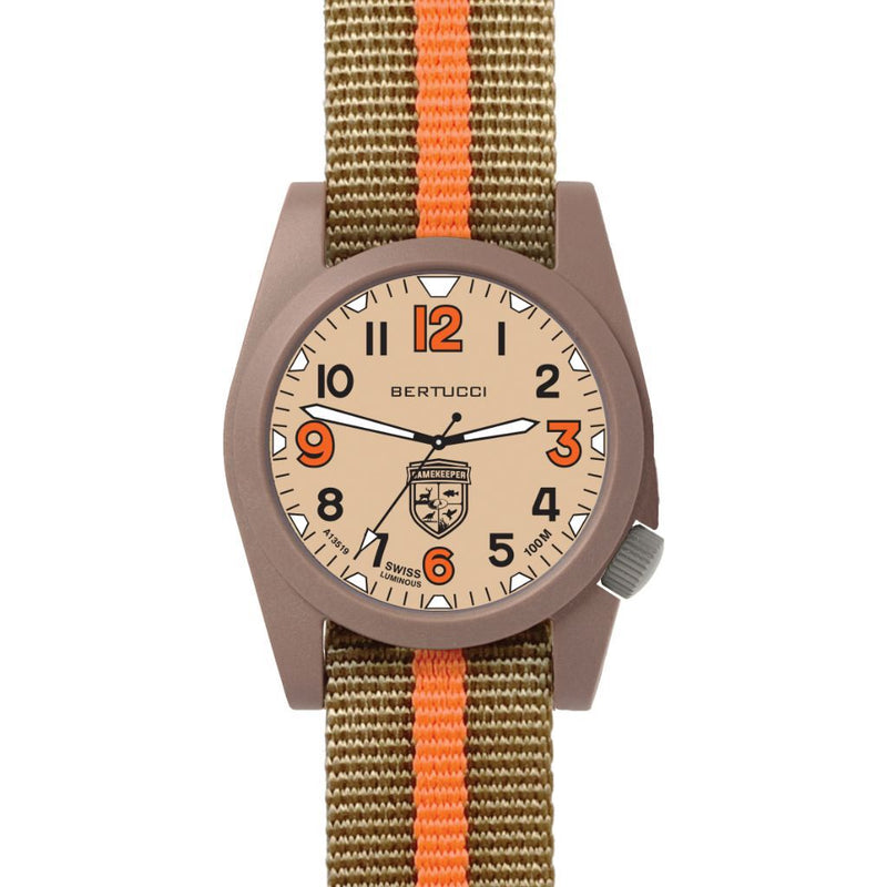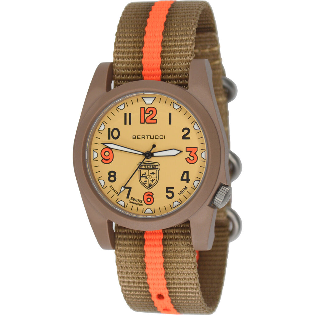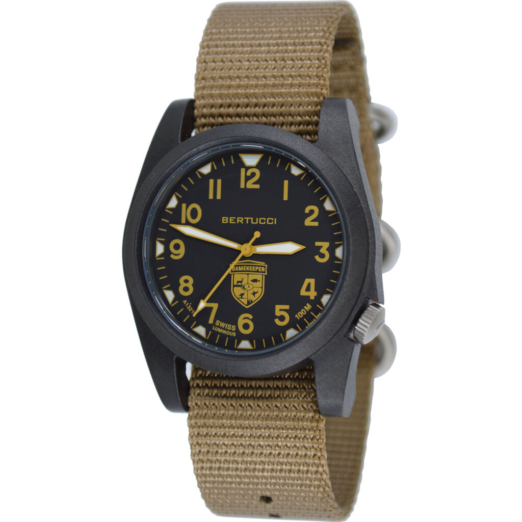 Bertucci has collaborated with Gamekeeper to create a new collection of field watches. Headstrong leadership and rugged performance are built into each timepiece. An unbeatable combination like no other; the Gamekeeper Watch by Bertucci is loaded with field-tested features that define the very essence of a true authentic time piece.
