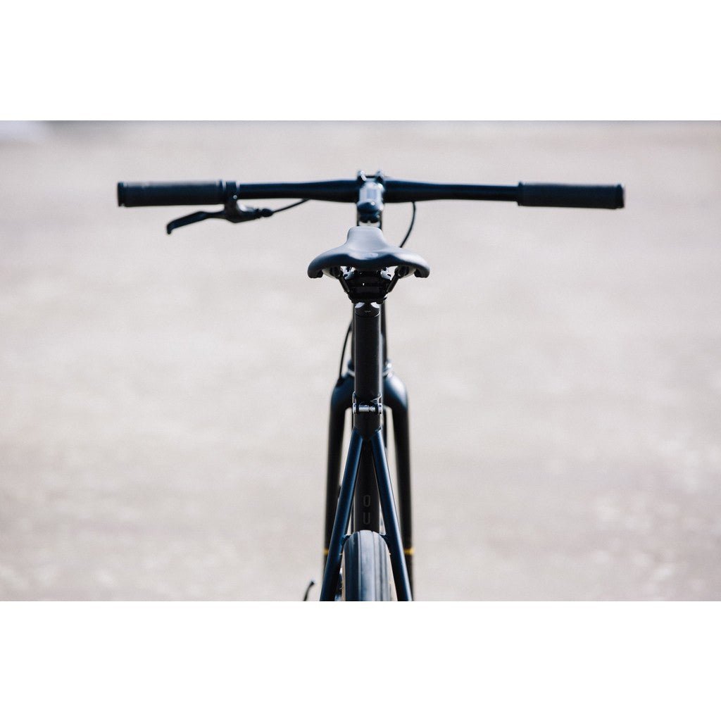 The Outlaw 27.5 inch Urban Road Bicycle is a new 2017 release geared for cruising through the streets. A smaller wheel rim with wide rubber wheels yields a normal sized wheel, but with exceptional grip. A wider fork and flat bar, combined with the wider skin wall tires, gives the Outlaw a unique build and aesthetic. A raked top tube and short back end give the Outlaw the feel of a cafe racer silhouette. The Gates Carbon belt drive ensures you don't need to oil the gears, making it perfect for commuters, while the SRAM rear hub shifts automatically and features a built in coaster brake. Businesslike and intuitive in its design, the Outlaw will have you riding in style and confidence.
