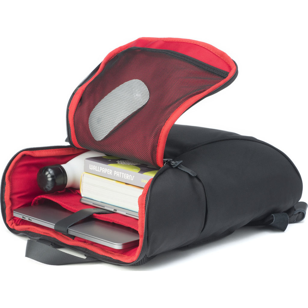 The Booq Black and Red Daypack Backpack has been designed to protect any size Mac or up to 15.6" PC, plus all other essentials. Perfectly sized to hold everything you need, Daypack's large main compartment opens wide for easy access to a dedicated laptop pocket, a zippered pocket, as well as an open-top mesh pocket. Convenient snap-button side pockets can be expanded, from their default flush position, to hold larger items like a water bottle or an umbrella. While the soft back padding increases comfort, Daypack's contoured shoulder straps are designed to fit just about everyone just right.