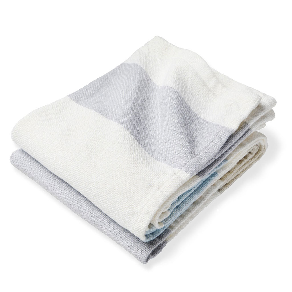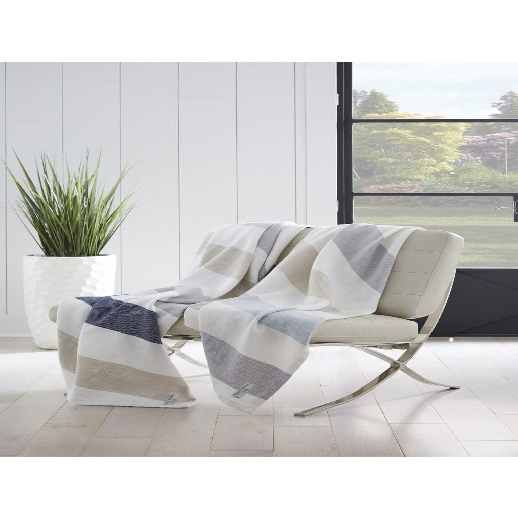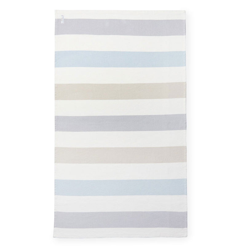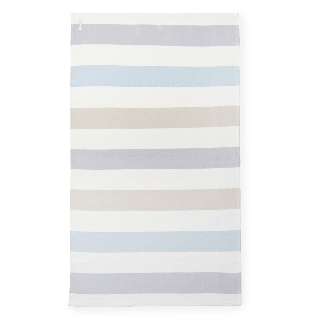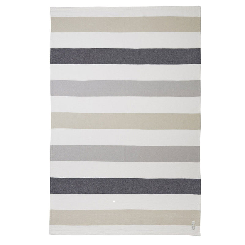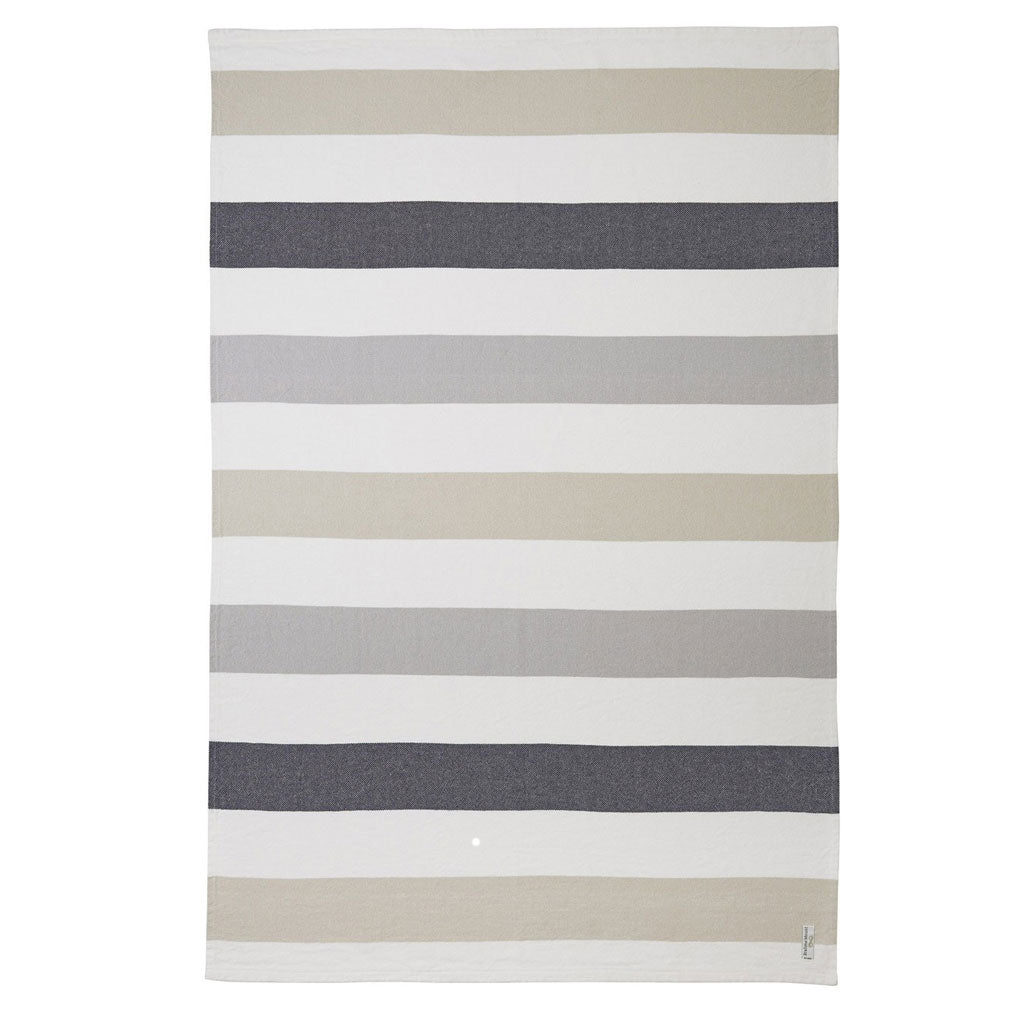 Walker's Point Blanket by Brahms Mount is a uniquely sized and versatile plain weave blanket crafted from amazingly soft and breathable fabric. It is a day blanket that is slightly larger than a throw, yet smaller than a twin sized blanket. The blanket features a modern striped pattern with a soft and neutral color palette that includes a mix of dove gray, shore and oyster.