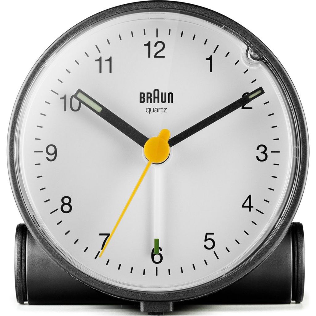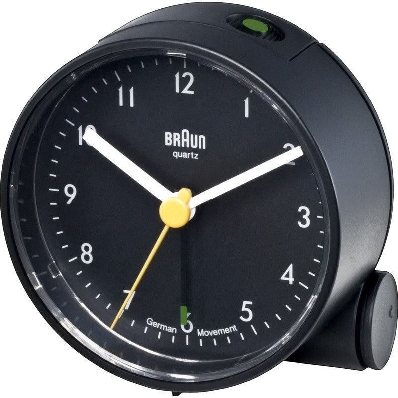 This Braun alarm clock has an easy to read dial layout, crescendo alarm and quiet German precision quartz movement. Stop using your phone as your alarm and start using this class clock. This alarm clock is a great for travel and comes in a variety of colors. A Duracell battery and a 2 year warranty included.