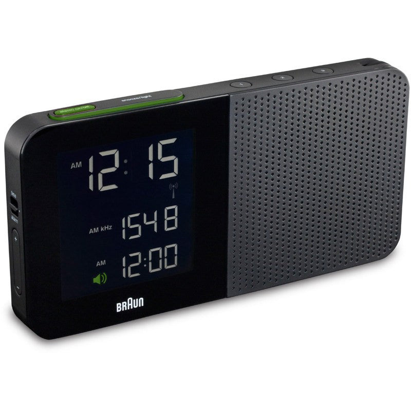 This Braun Global Radio Controlled Alarm Clock Radio has a reverse LCD display, with a patented high visibility backlight and a snooze function. The clock has FM/AM functionality, 6 channel preset function, volume control and a digital tuner. The clock has a quick set function for easy use and can be set to 12 or 24 hour mode. The radio controlled function can be switched off and the clock can be manually set for use in those countries where the radio controlled signal is not picked up. The Black Radio Clock comes with Duracell batteries included and a 2 year warranty. This clock won the Red dot award for product design 2012 and an IF gold award for product design in 2013.