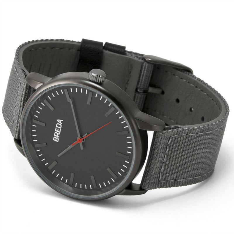 BREDA Watches crafts one-of-a-kind timepieces with quality materials and minimalist style. The Valor Watch in Gunmetal features Japanese Quartz movement, a Gunmetal case, a Matte Black dial and a rugged nylon strap. Simplicity is key with Breda's Valor Watch.