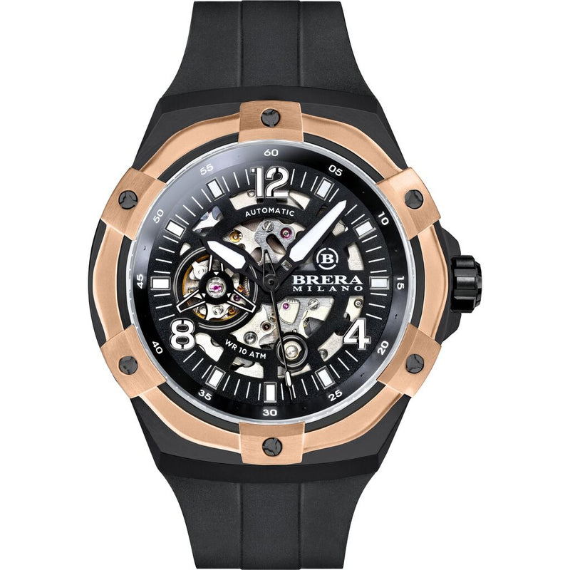 Brera Milano Supersportivo Evo Automatic Watch | Black.Brushed Rose Gold IP