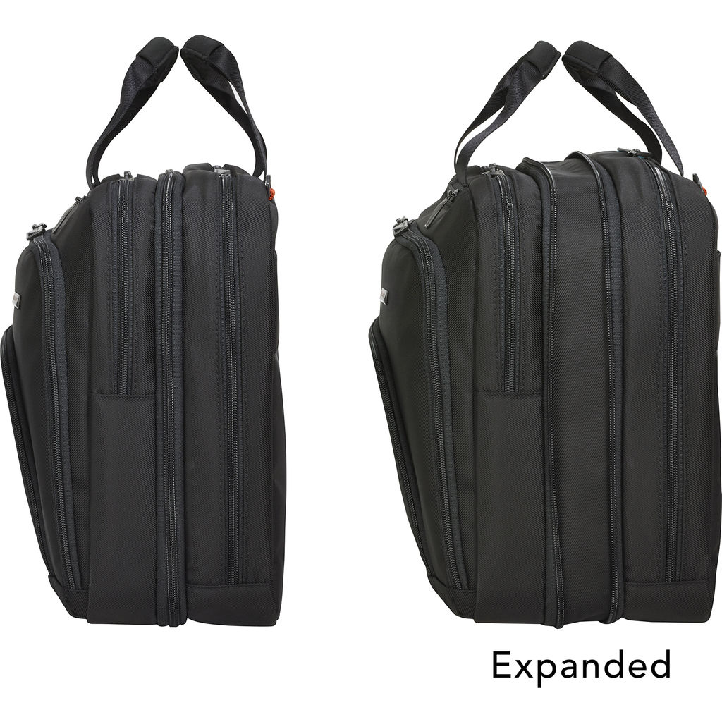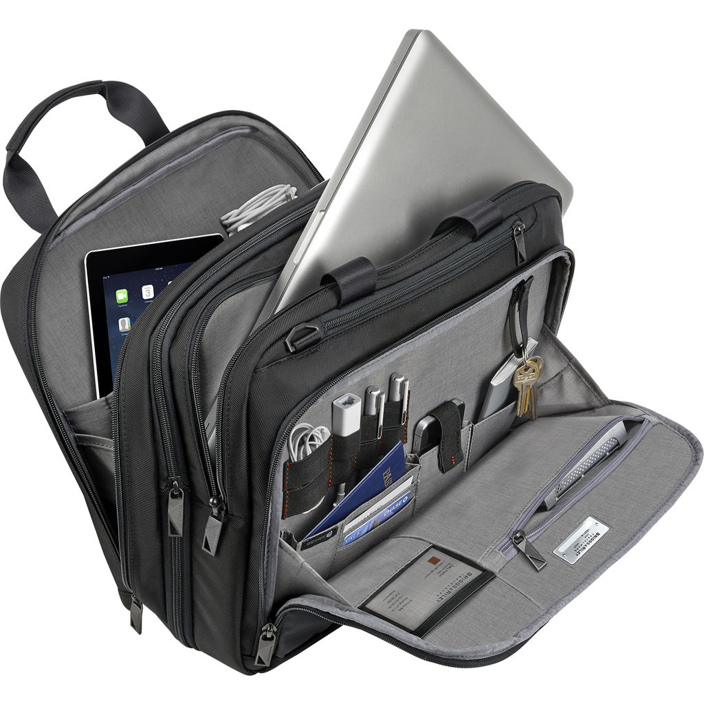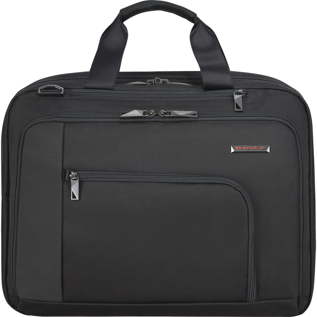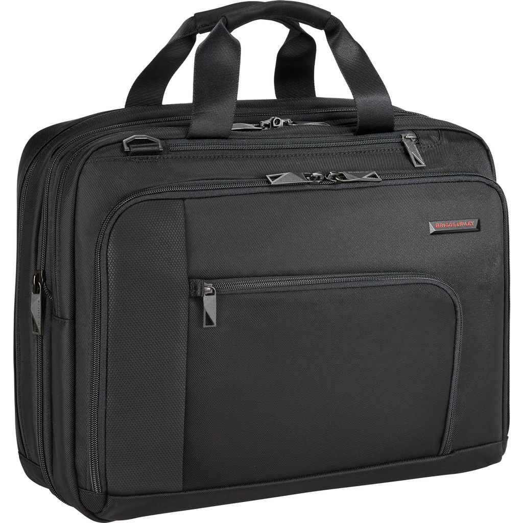 Be prepared for whatever comes your way with the Briggs and Riley Adapt Expandable Black Briefcase. You can keep a slim profile or expand the case up to 2 inches when you have more to carry. A great briefcase for men or a women's briefcase. This laptop briefcase bag fits up to a 15.6" laptop. Whether you're commuting or going to a business meeting, this is the bag for you!