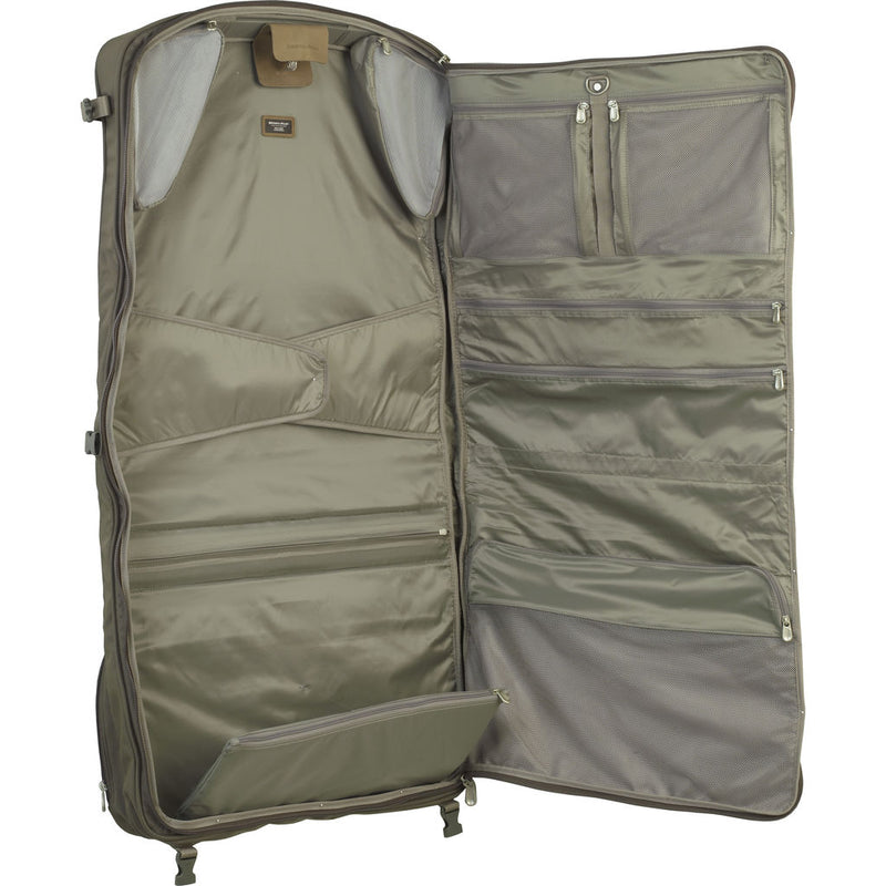 If you travel a lot for business then you can appreciate a well designed garment bag. The Compact Garment Bag in Olive from Briggs and Riley will get your clothes to your destination safely without forcing you to check a bag. Skip baggage claim and use this bag as a carry on for your quick trip. This is a tri-fold garment bag that is compact in design and will still help you stay organized.