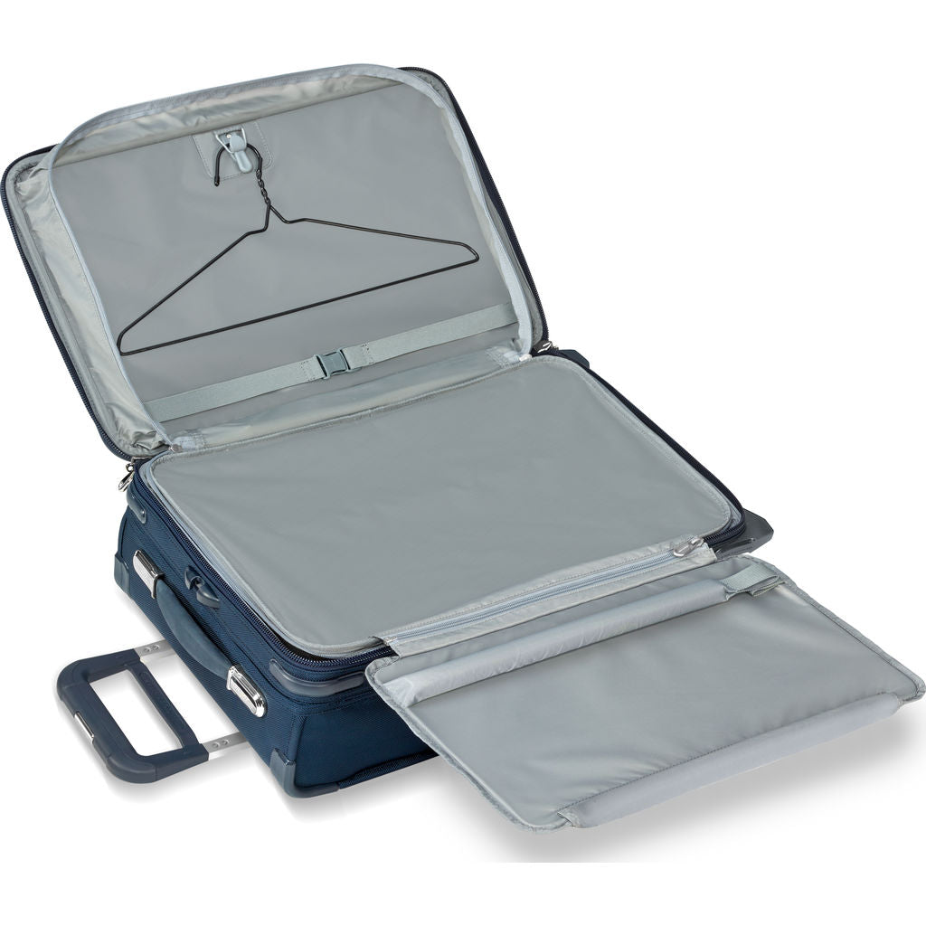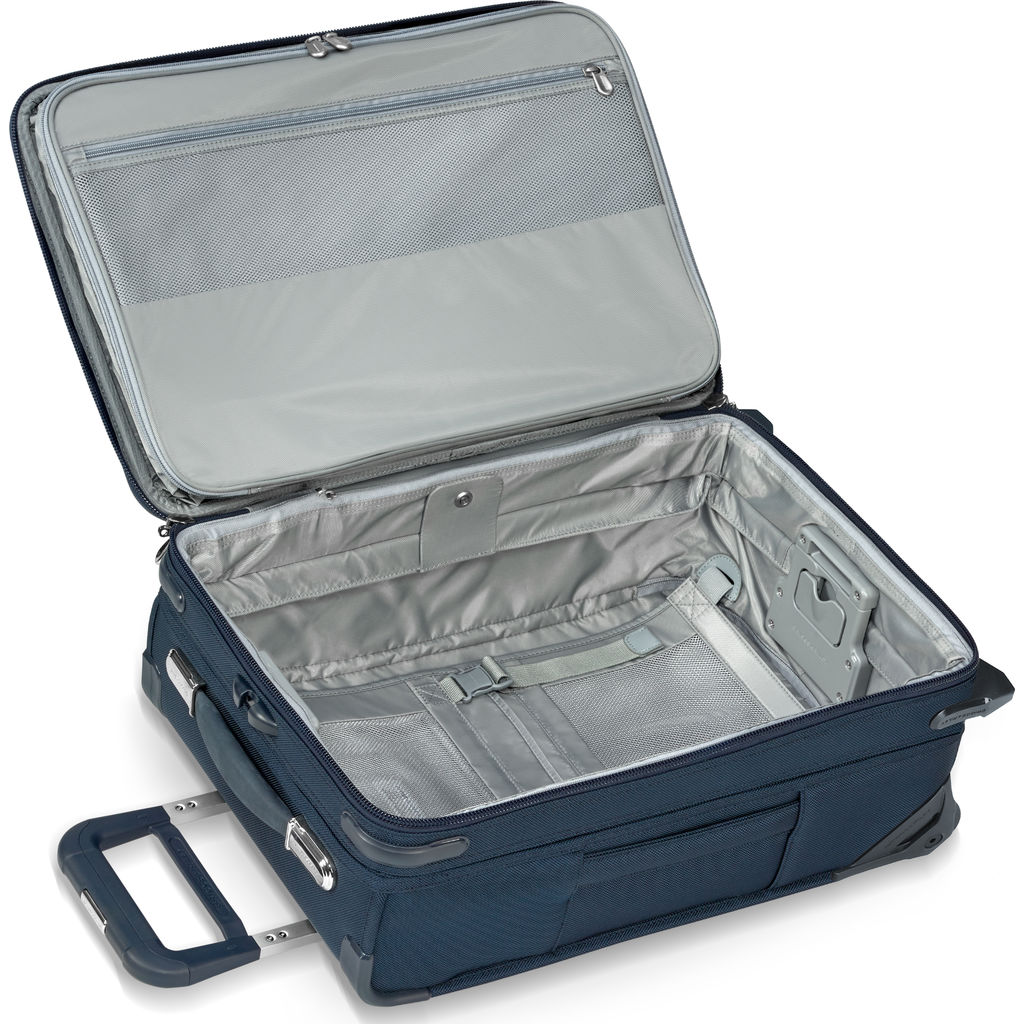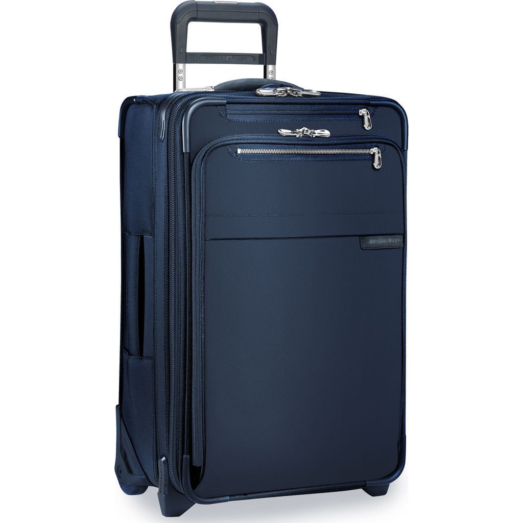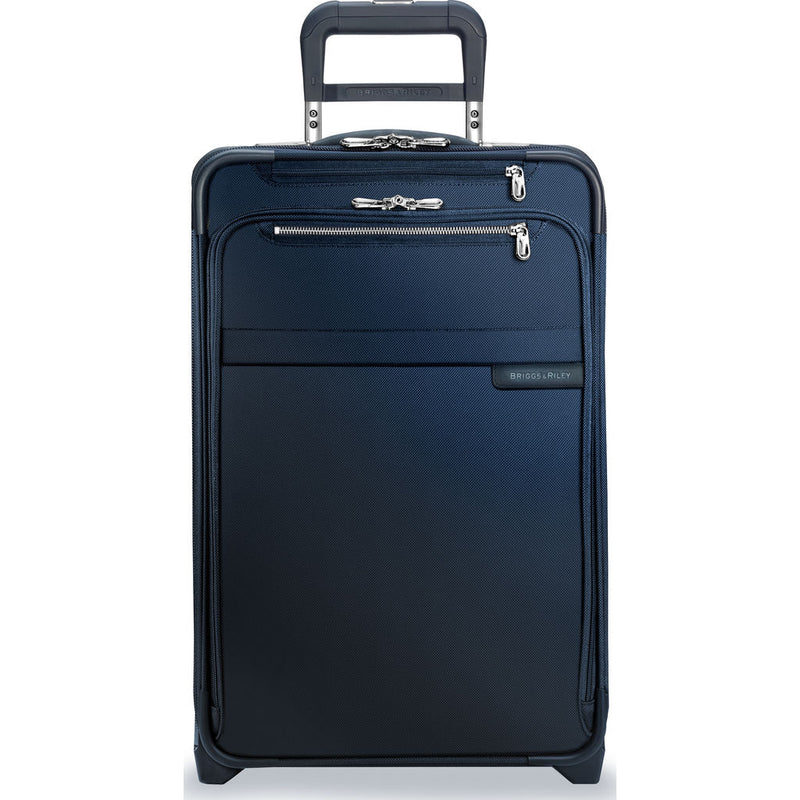 Navigate the airport with ease using the Navy Domestic Carry On Expandable Upright Suitcase from Briggs and Riley. Briggs & Riley has made your life easier with their CX technology. The CX technology allows you to expand the suitcase by 25% and then compress it back so that it will still fit in the overhead storage area. Made with durable ballistic nylon to withstand tough conditions. This bag will fit in the overhead compartment of most U.S. domestic airlines.
