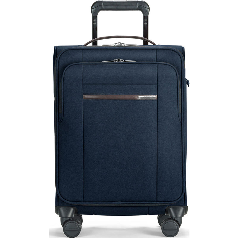 Traveling made easy with the Navy International Carry-On Spinner Spinner Suitcase from Briggs & Riley. With plenty of pockets and organization packing for your trips will be a breeze. This lightweight navy blue carry-on features four spinning wheels that will allow you to move through the airport without any difficulty. It has a durable body that will protect your belongings while still fitting feet first into the over head compartment.