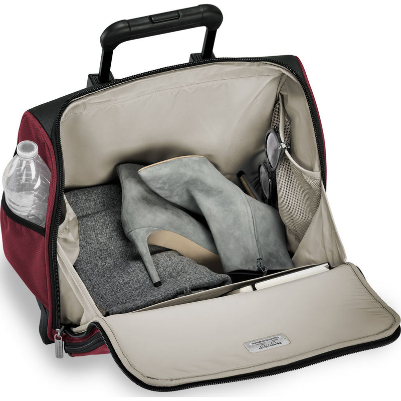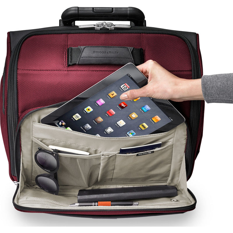 The perfect buddy for all kind of traveling is one that is convenient everywhere. The Transcend Rolling Cabin Bag in Merlot from Briggs & Riley keeps you mobile while storing all your essentials. Carry on board in the overhead compartment or laying flat under your seat for easy convenience. Take weight off your shoulders everyday with this perfect commuter traveling bag.