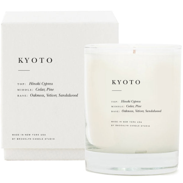 This scent is inspired by the tree-lined streets and wooden architecture in Kyoto. There is a blend of Hinoki cypress, cedar, sandalwood, vetiver, and pine present when you burn the candle. A great candle for any room in your home!