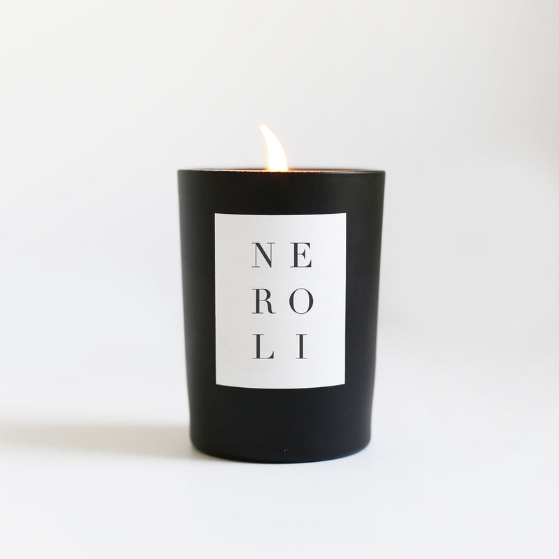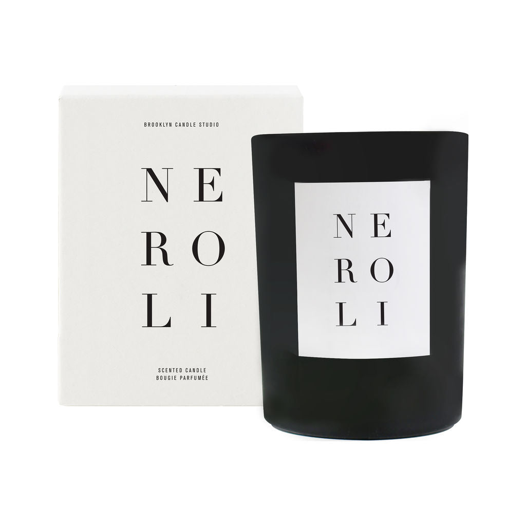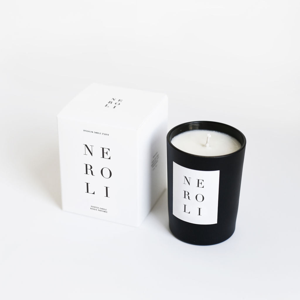 The Neroli Noir Candle from Brooklyn Candle Studio has notes of sage, lily, neroli, and jasmine over a base of orange blossom and amber for a uplifting and energizing fragrance. Inspired by neroli oil, the sweet bright blossom of an orange tree. Inspired by natures bounty this candle will help set the mood. Hand-poured in a cool matte black glass vessel that you can re purpose. Made in Brooklyn, New York out of 100% soy wax so you get a clean burn.