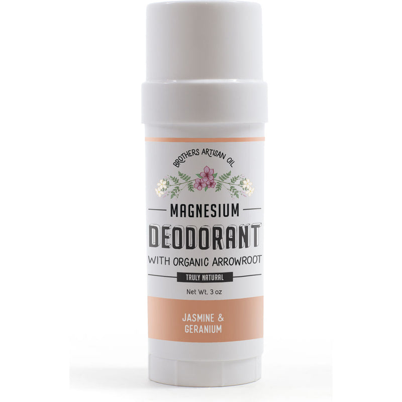 Be confident in every hot circumstance with Brothers Artisan Oil Deodorant in Jasmine & Geranium. Made with natural ingredients that truly work. The twist tube deodorant relies on Magnesium to control odor, organic Arrowroot powder to absorb wetness, and Kaolin Clay to continually purify your pits. Made with no baking soda, aluminum, and fragrance oils that can be harmful to your skin. Let your body naturally fight the sweat for all of life battles!