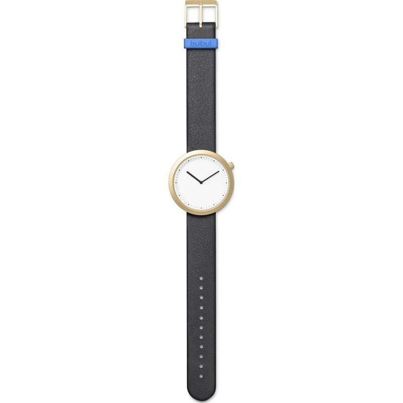 The simple and elegant Bulbul Facette 06 men's watch features sapphire crystal glass, Swiss made 14K-gold plated movement, ten years of battery life, and a 316L stainless steel casing. This danish design is iconic and subtle in its circular design and is accompanied by a fine black Italian leather strap. The Facette 06 maintains Bulbul's high-level of precision engineering.
