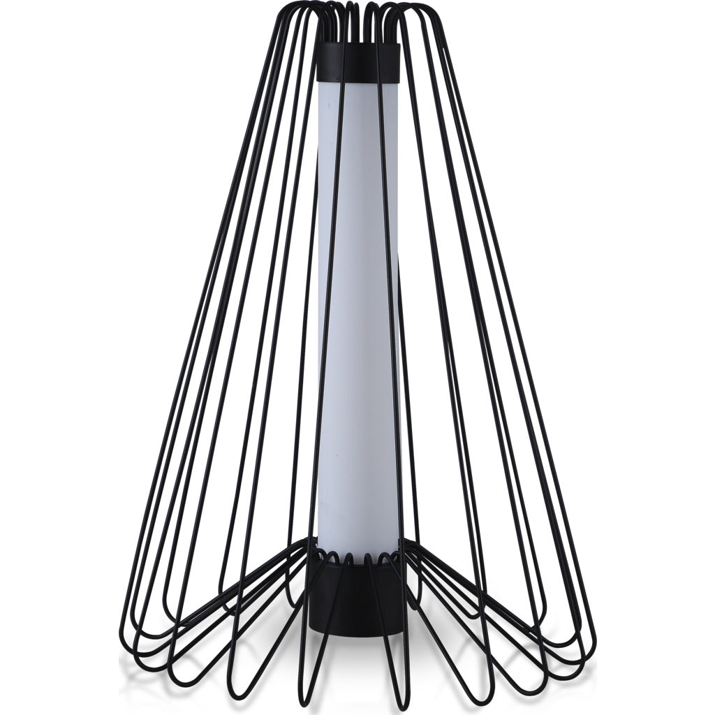 - Materials: Powdercoated steel wire structure, white acrylic shade, w/LED light source, black cord and floor switch
