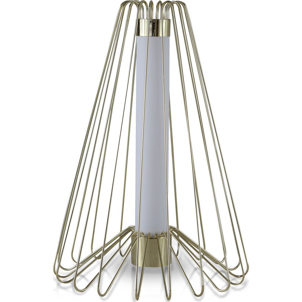 - Materials: Plated steel wire structure, white aryllic shade, w/LED light source, black cord and floor switch