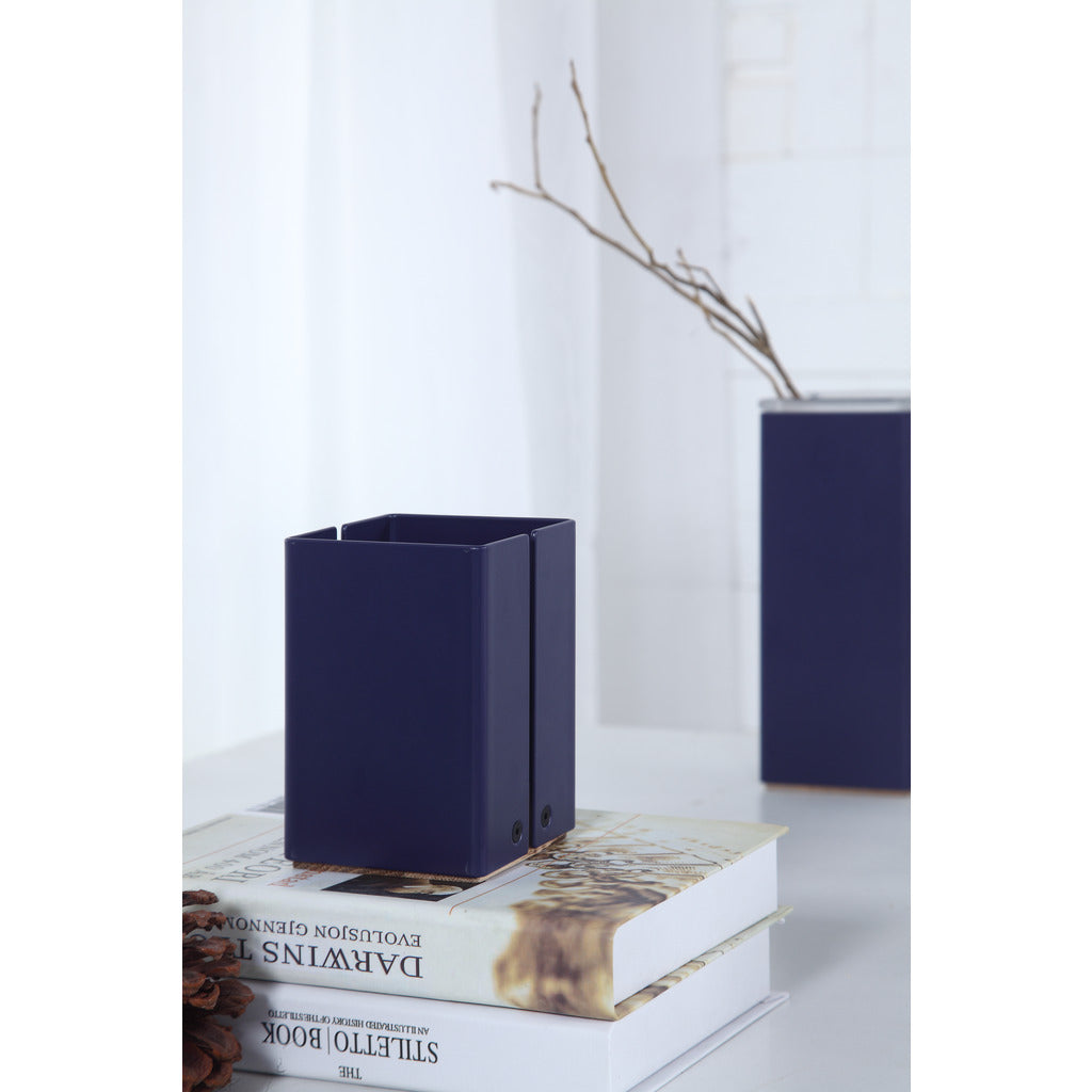 Give your office or living room the update it needs with the Camino Santa Container in blue/oak. It has an oak base with blue steel sides. You can use it to store whatever you need, utensils, cooking spoons or branches.