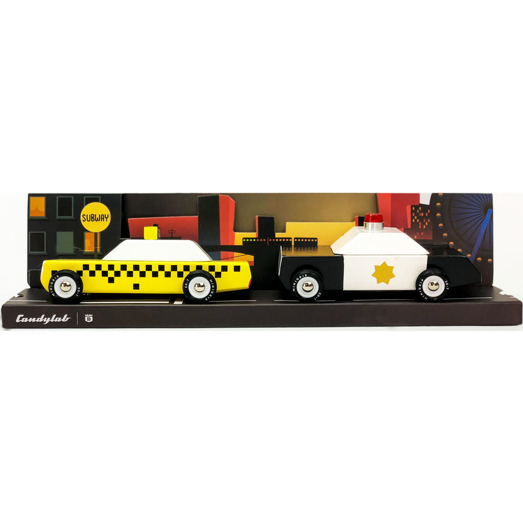 The Candylab Taxi and Police City Scrape Set in junior size is a learning tool on how to adventure properly. The purely wood design cars from Candylab Toys are minimalistic with visual poise, crafted with personality just like the cars from the past. Time to stop saying no to your little one's request when they want to play with your Candylab car collection and give them their own baby collection!
