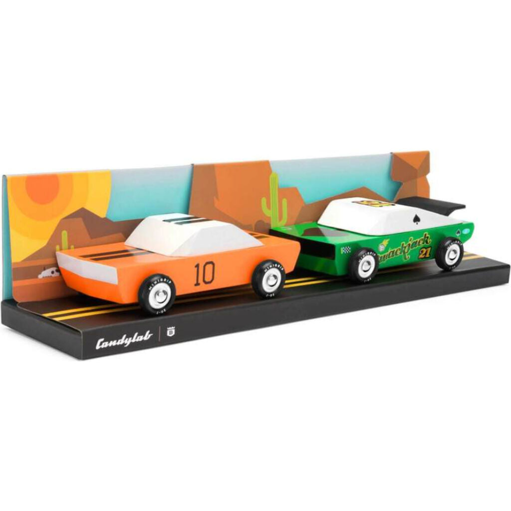 Always ready for a friendly competition, these two nimble squirts are eager for a fast drive out in the desert. Too fast for the naked eye, the dust plume on the horizon is what gives them away. Now it's your turn to race. *Includes both the junior GT-10 and Bwackjack*