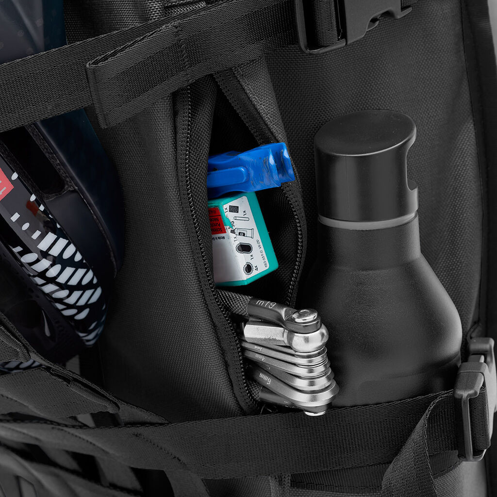 - Easy access side U-lock/water bottle pockets